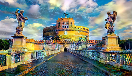 Rome Italy Castel Sant Angelo Mausoleum of Hadrian Black Ornate Wood Framed Art Print with Double Matting by Gavidia, Pedro
