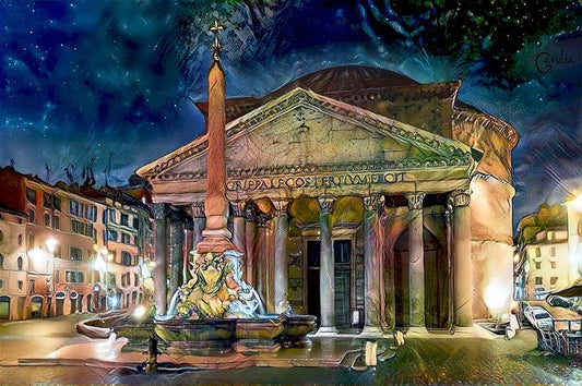 Rome Italy Pantheon Black Ornate Wood Framed Art Print with Double Matting by Gavidia, Pedro