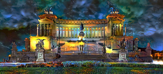 Rome Italy Victor Emmanuel II National Monument at night Black Ornate Wood Framed Art Print with Double Matting by Gavidia, Pedro