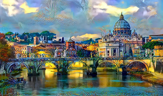 Vatican City Saint Peter Basilica and bridge by day Black Ornate Wood Framed Art Print with Double Matting by Gavidia, Pedro