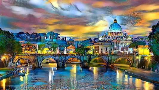 Vatican City Saint Peter Basilica and bridge by night Black Ornate Wood Framed Art Print with Double Matting by Gavidia, Pedro