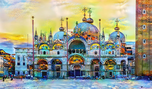 Venice Italy Patriarchal Cathedral Basilica of Saint Mark at sunset Black Ornate Wood Framed Art Print with Double Matting by Gavidia, Pedro