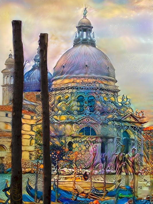 Venice Italy The Salute Church of Saint Mary of Good Health Black Ornate Wood Framed Art Print with Double Matting by Gavidia, Pedro