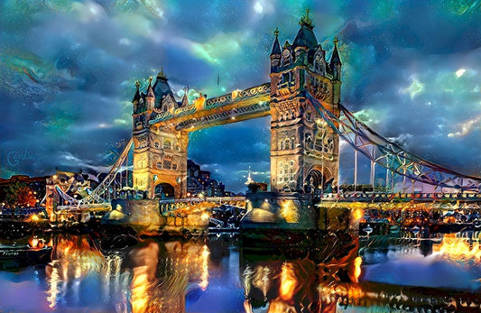 C001 Colorful Cityview Tower Bridge London Black Ornate Wood Framed Art Print with Double Matting by Heere, Ray