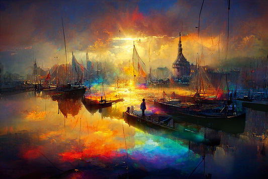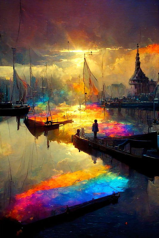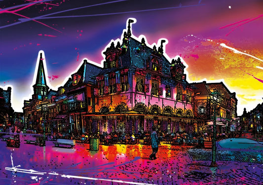 C004 Colorful Cityview Of Dutch City Of Hoorn Black Ornate Wood Framed Art Print with Double Matting by Heere, Ray