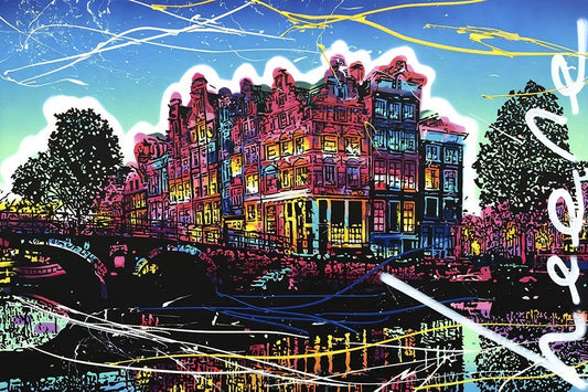 C009 Colorful Cityview of Brouwersgracht In Amsterdam Black Ornate Wood Framed Art Print with Double Matting by Heere, Ray