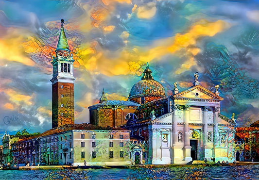 Venice Italy Church of San Giorgio Maggiore Black Ornate Wood Framed Art Print with Double Matting by Gavidia, Pedro