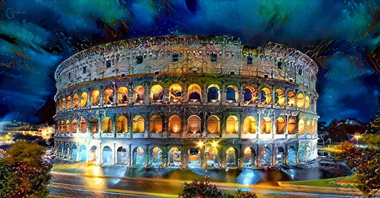 Rome Italy Coliseo Night 2022 Black Ornate Wood Framed Art Print with Double Matting by Gavidia, Pedro