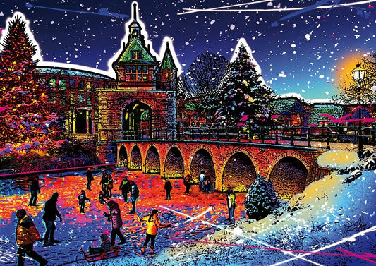 C003 Colorful Cityview Dutch City Of Hoorn Christmas Black Ornate Wood Framed Art Print with Double Matting by Heere, Ray