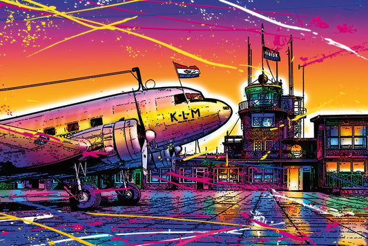 C005 Colorful Cityview Of Airport Schiphol Black Ornate Wood Framed Art Print with Double Matting by Heere, Ray