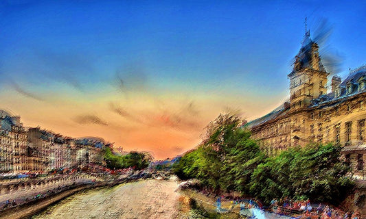 River Seine A Black Ornate Wood Framed Art Print with Double Matting by Manlove, David