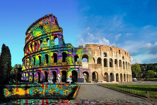Colosseum Exposed Black Ornate Wood Framed Art Print with Double Matting by Dean Russo Collection