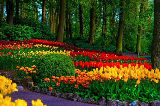 Colorful Corner Keukenhof Tulips Garden 3 Black Ornate Wood Framed Art Print with Double Matting by Jenny Rainbow Fine Art