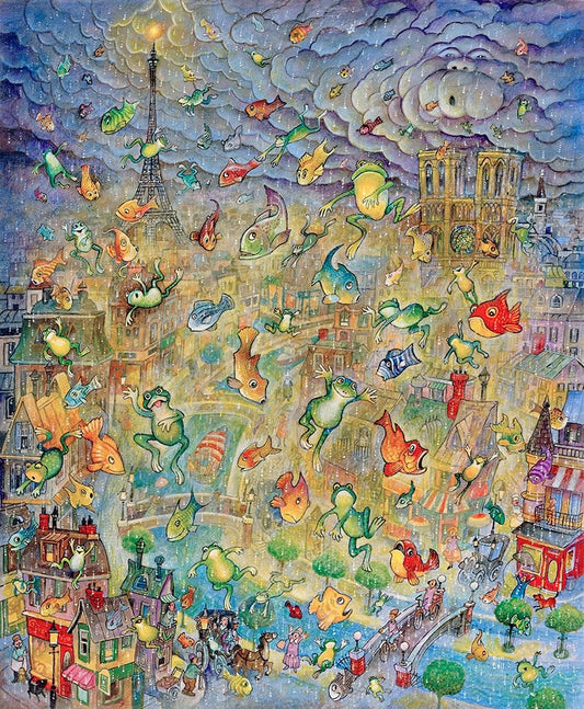 Raining Frogs And Fishes Black Ornate Wood Framed Art Print with Double Matting by Bell, Bill