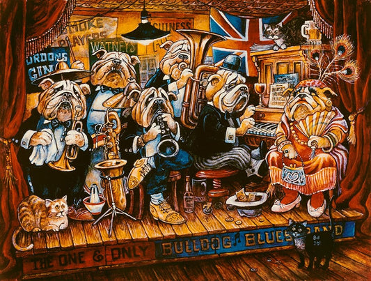 Bull Dog Blues Band Black Ornate Wood Framed Art Print with Double Matting by Bell, Bill