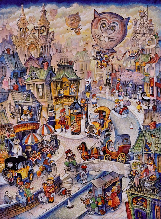 Paris Les Chats Black Ornate Wood Framed Art Print with Double Matting by Bell, Bill