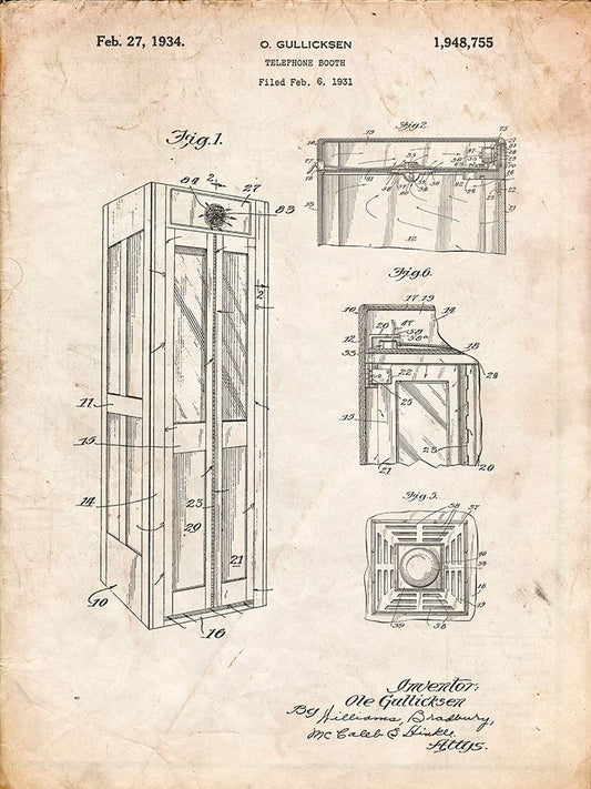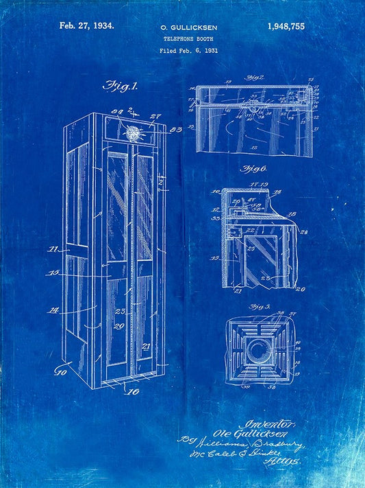 PP1088-Faded Blueprint Telephone Booth Patent Poster Black Ornate Wood Framed Art Print with Double Matting by Borders, Cole