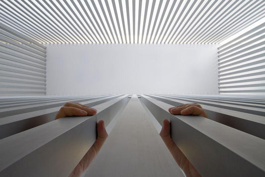 Stairs White Modern Wood Framed Art Print with Double Matting by Serra, Damiano