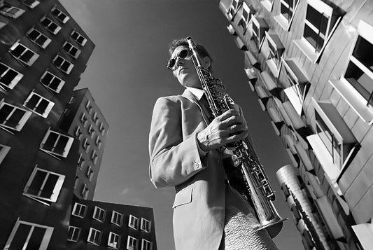 Frank M.-Saxophonist White Modern Wood Framed Art Print with Double Matting by Ratzer, Klaus