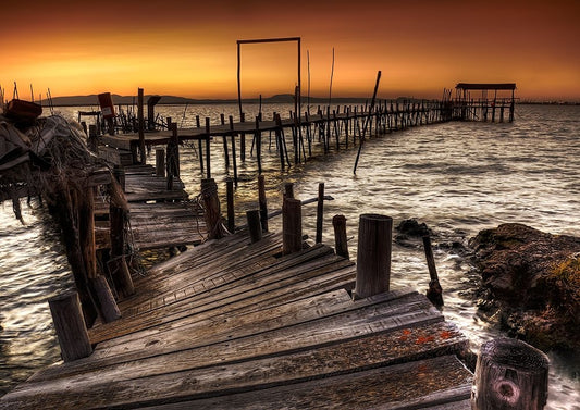 By Sunset White Modern Wood Framed Art Print with Double Matting by Krol, Piotr