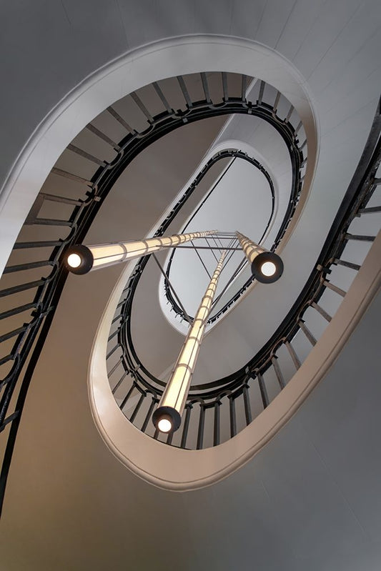 Stairs With Lights White Modern Wood Framed Art Print with Double Matting by Dupont, Isabelle