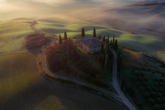 Tuscan Countryside White Modern Wood Framed Art Print with Double Matting by Della Latta, Massimo