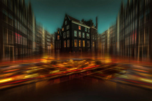 Amsterdam Lights White Modern Wood Framed Art Print with Double Matting by aRRO