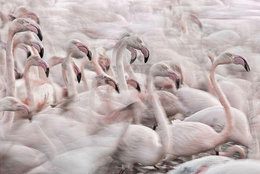 In The Pink Transhumance White Modern Wood Framed Art Print with Double Matting by Benezech, Martine