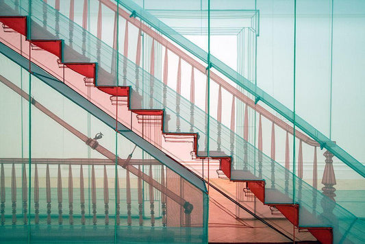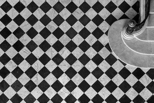 Chessboard Staircase White Modern Wood Framed Art Print with Double Matting by Viretti, Jean-Louis