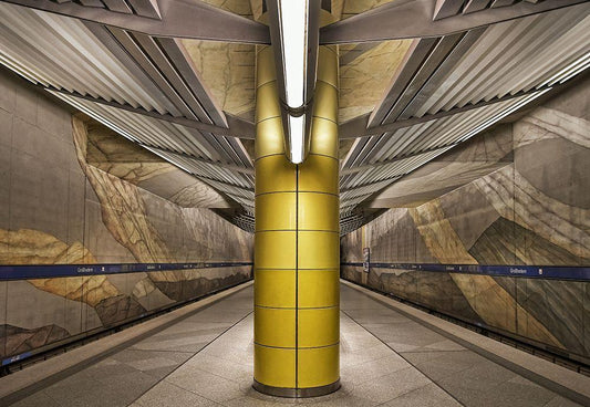 Subway Munich White Modern Wood Framed Art Print with Double Matting by Reichert, Renate