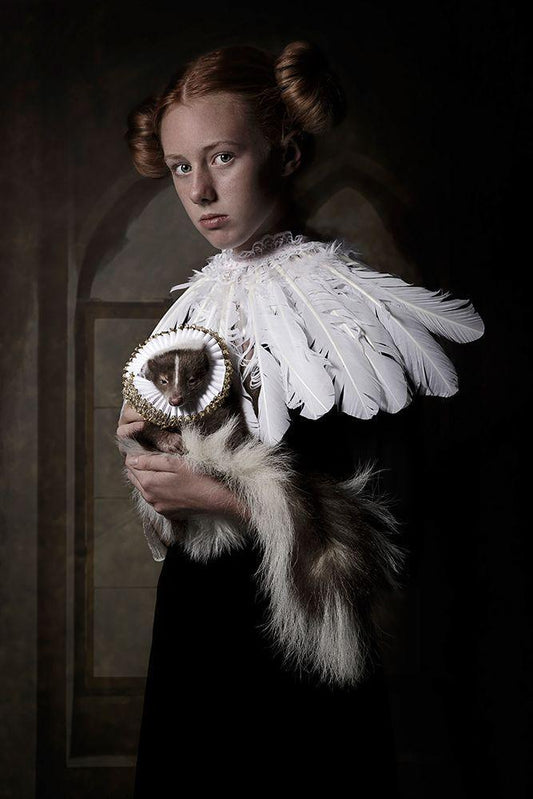 My Camera Shy Skunk White Modern Wood Framed Art Print with Double Matting by Kayen-Mouthaan, Carola