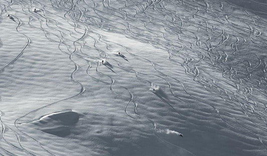 Snowboarder And His Dog White Modern Wood Framed Art Print with Double Matting by Krivec, Ales