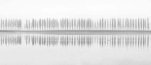 Misty Alley White Modern Wood Framed Art Print with Double Matting by Fotoea