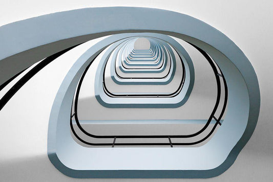 Spiral Staircase And Shadows White Modern Wood Framed Art Print with Double Matting by Hawerkamp, Hans-Wolfgang