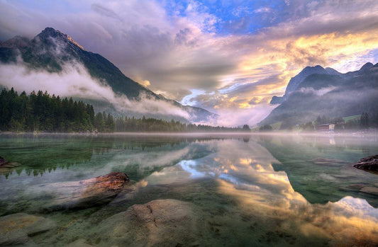 Lake Hintersee White Modern Wood Framed Art Print with Double Matting by Keller