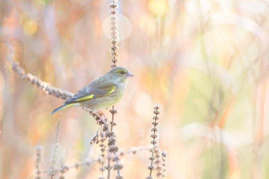Green Finch White Modern Wood Framed Art Print with Double Matting by Willaert, Erik