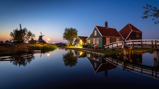 Europe-The Netherlands-Zaandam-Zaanse Schans at sunset White Modern Wood Framed Art Print with Double Matting by Jaynes Gallery