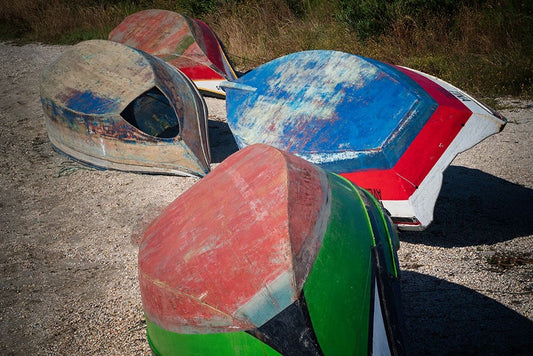 Europe-Portugal-Torreira-Wooden boats on beach White Modern Wood Framed Art Print with Double Matting by Jaynes Gallery