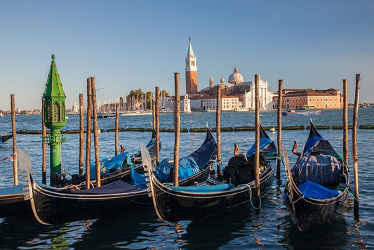Italy-Venice View of gondolas in front of Piazza San Marco (St Marks Square) White Modern Wood Framed Art Print with Double Matting by Eggers, Julie