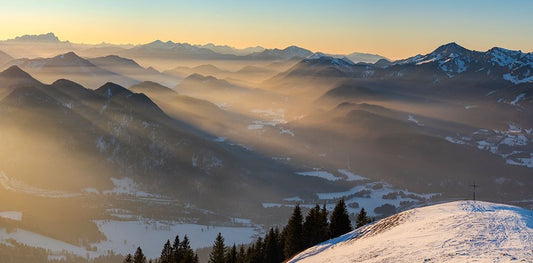 mount Schoenberg near Lenggries in the Bavarian alps during winter. Germany- Bavaria White Modern Wood Framed Art Print with Double Matting by Zwick, Martin