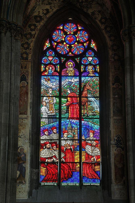 Austria-Vienna-Inner City (UNESCO World Heritage Site)-Votive Church stained glass window White Modern Wood Framed Art Print with Double Matting by Looney, Hollice