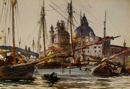 The Church of Santa Maria della Salute from Giudecca, 1904-09 White Modern Wood Framed Art Print with Double Matting by Sargent, John Singer