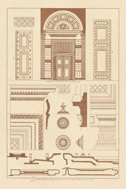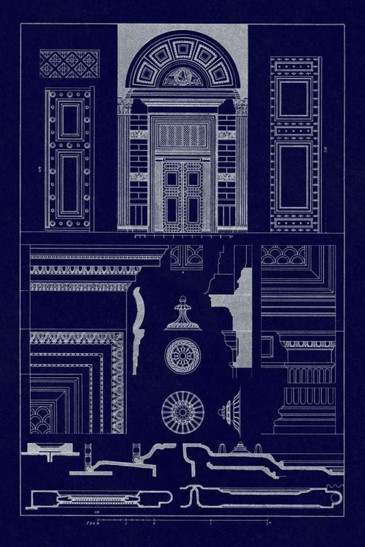 Doorway of the Pantheon at Rome (Blueprint) White Modern Wood Framed Art Print with Double Matting by Buhlmann, J.