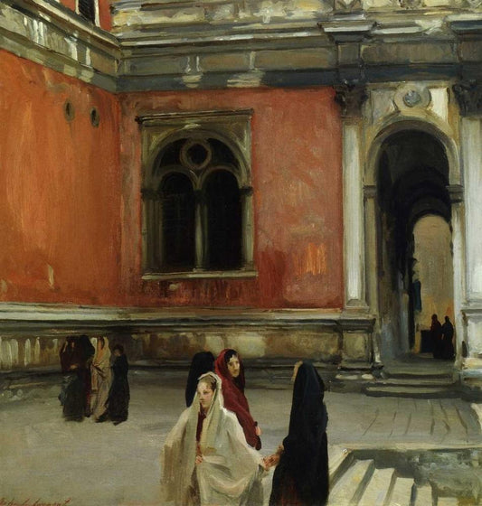Venetian Interior, 1880 White Modern Wood Framed Art Print with Double Matting by Sargent, John Singer