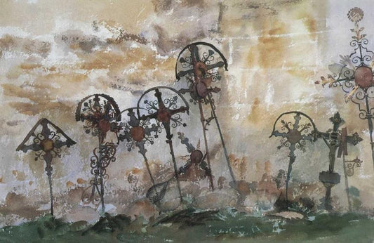 Graveyard in the Tyrol White Modern Wood Framed Art Print with Double Matting by Sargent, John Singer