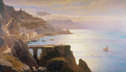Amalfi Coast S.L.L. White Modern Wood Framed Art Print with Double Matting by Haseltine, William Stanley