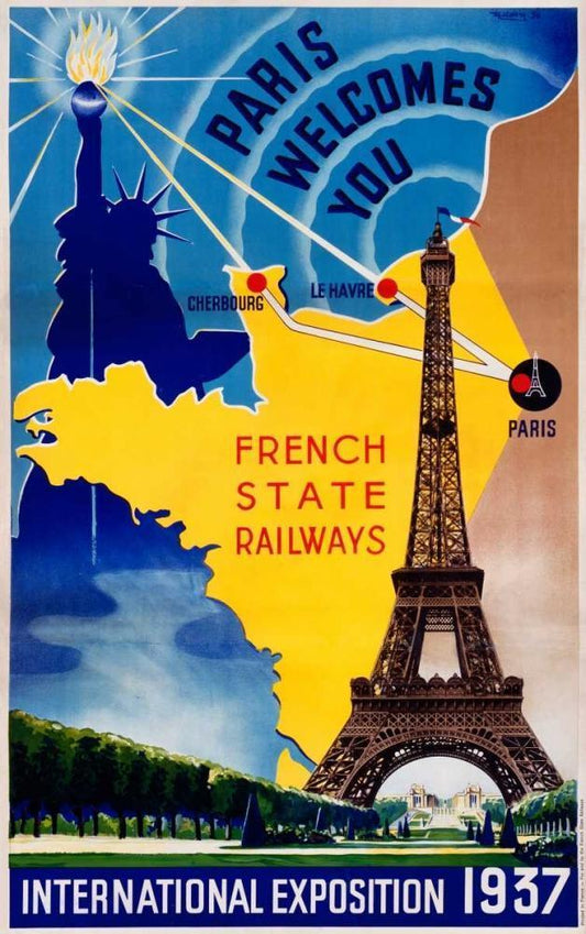 Paris / International Exposition 1937 White Modern Wood Framed Art Print with Double Matting by Lilden