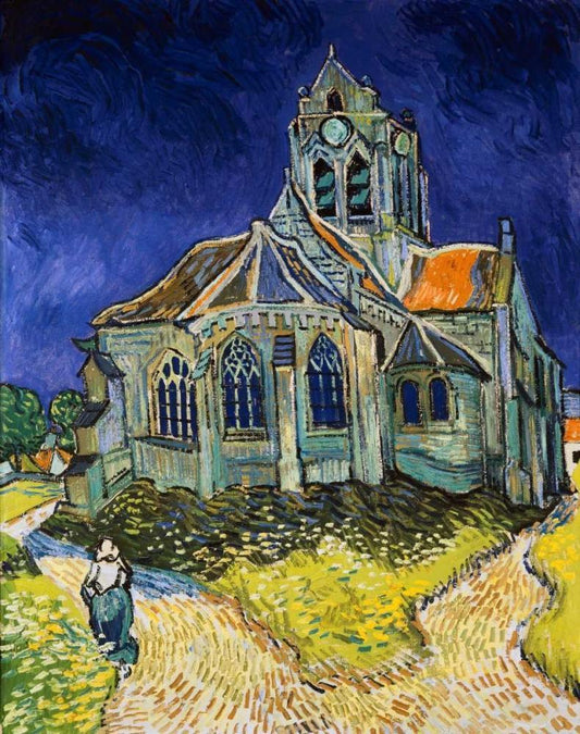 The Church at Auvers White Modern Wood Framed Art Print with Double Matting by Van Gogh, Vincent