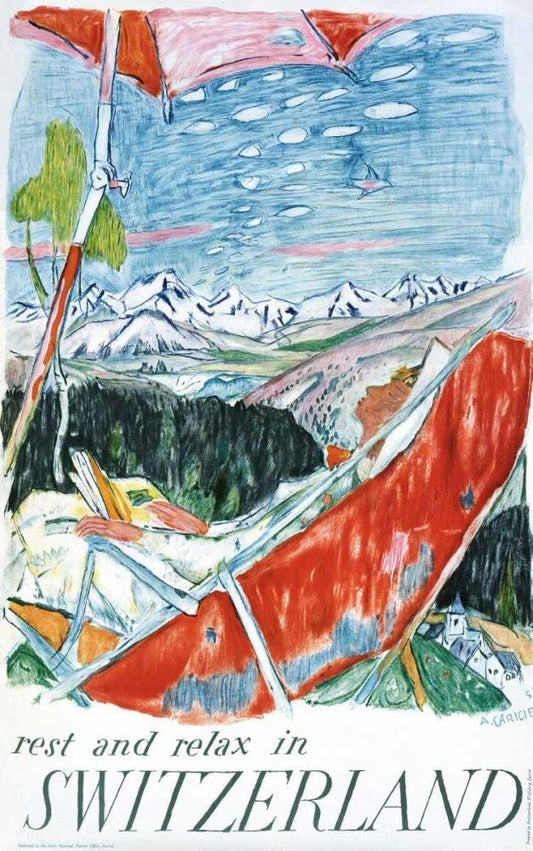 Fliegt in die Schweiz White Modern Wood Framed Art Print with Double Matting by Hafelfinger, Eugen