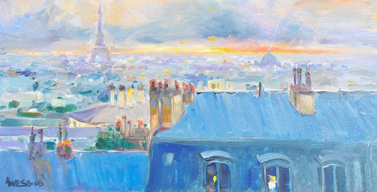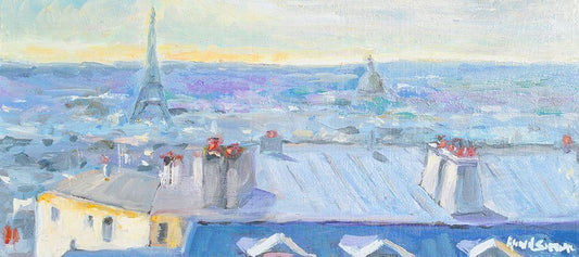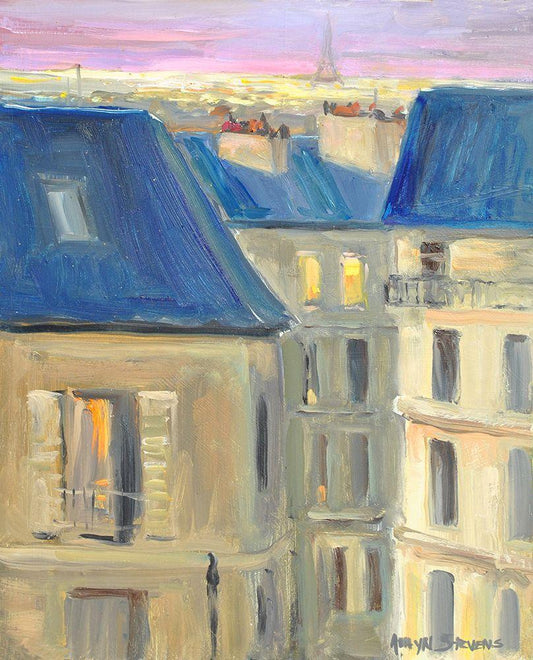 Parisian Roofs White Modern Wood Framed Art Print with Double Matting by Stevens, Allayn
